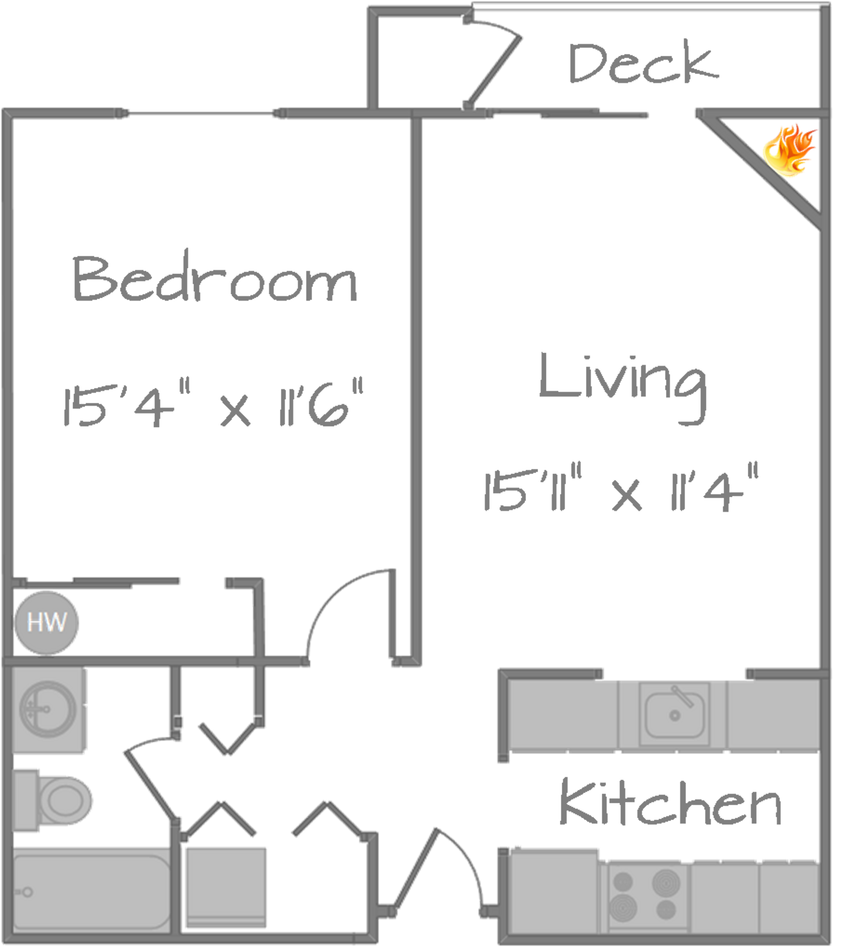 Our floor plans are designed with your comfort and enjoyment in mind. This apartment includes a full size in-unit washer and dryer, and dishwasher. All units have a balcony or patio with extra storage and an electric fireplace to cozy up to in the coming winter months.