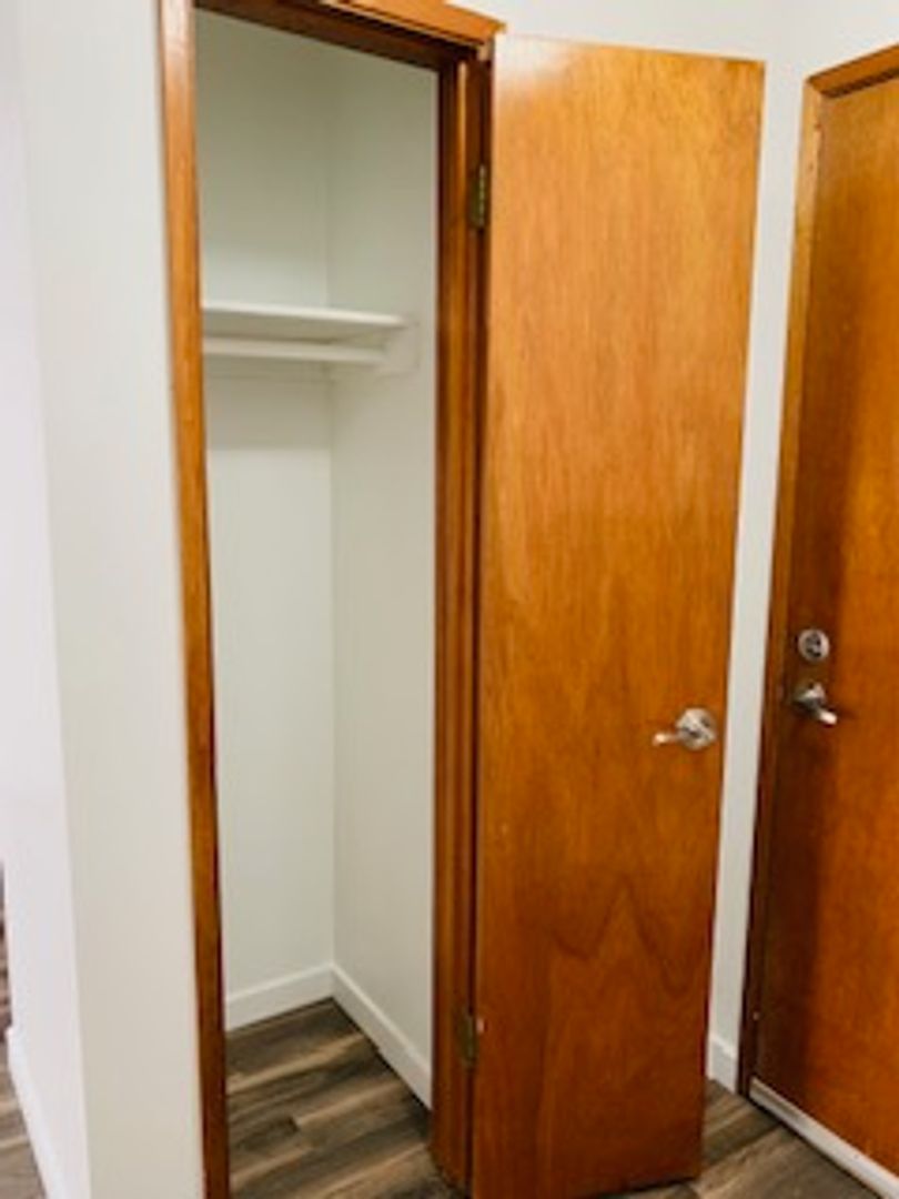 This charming 1 bedroom home features hardwood style flooring throughout, a full kitchen, built-in storage, a spacious bedroom and one full bathroom.