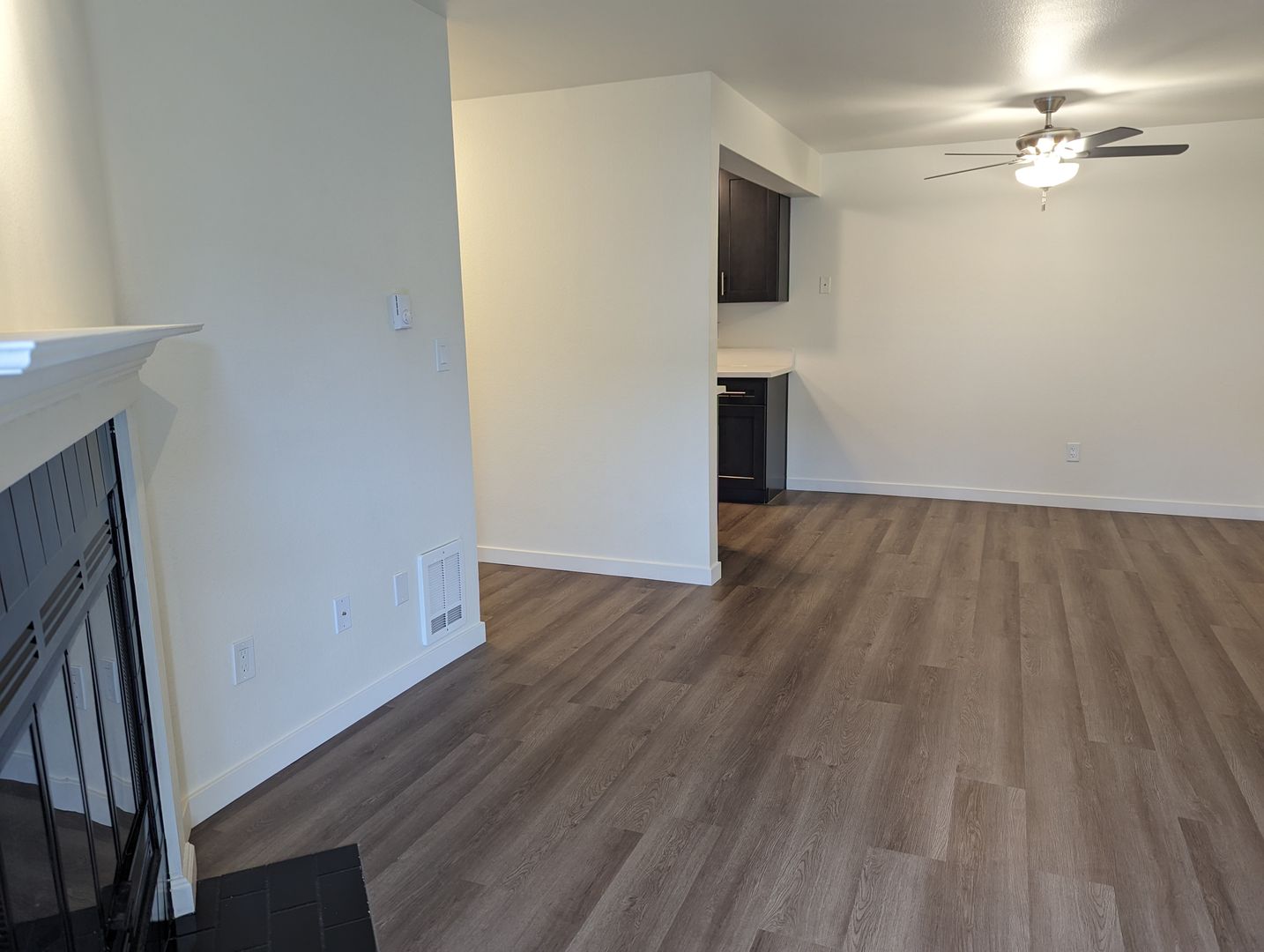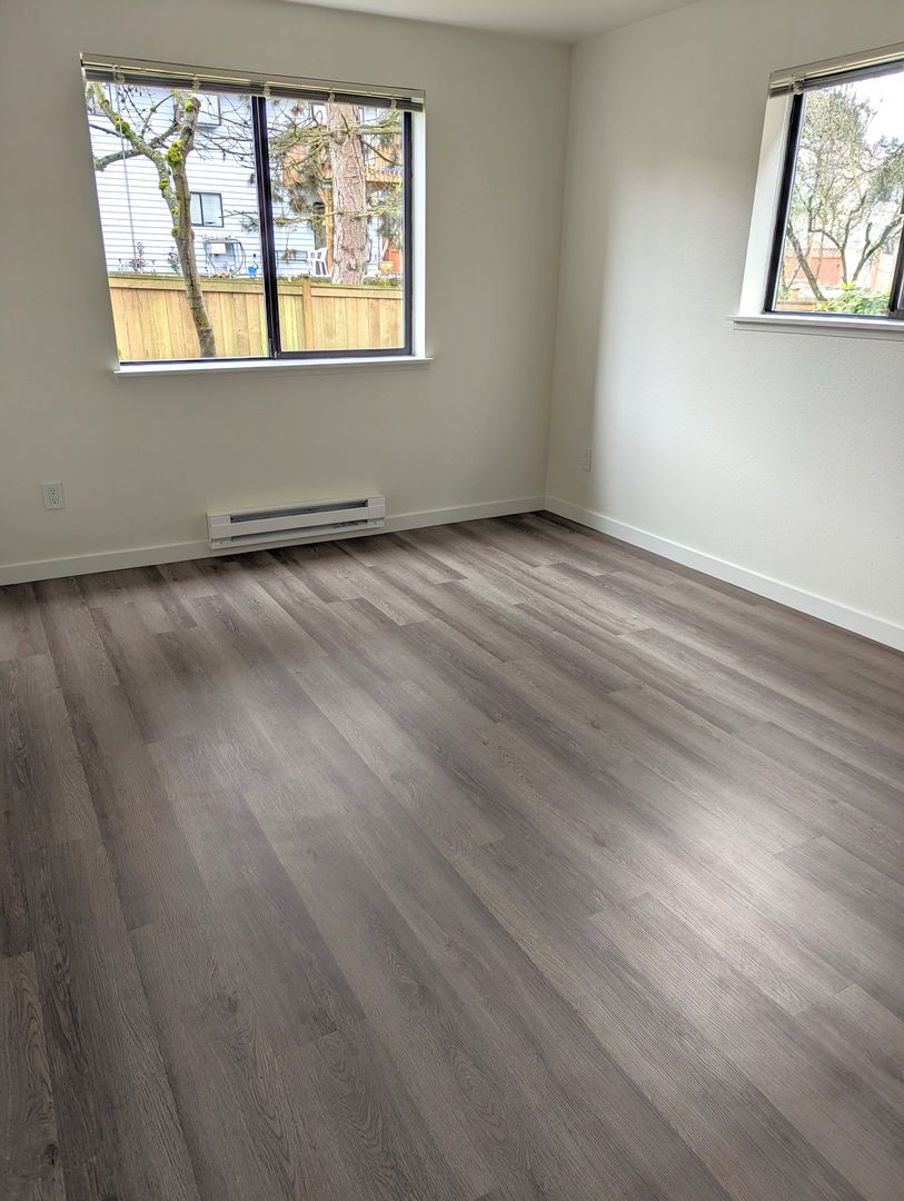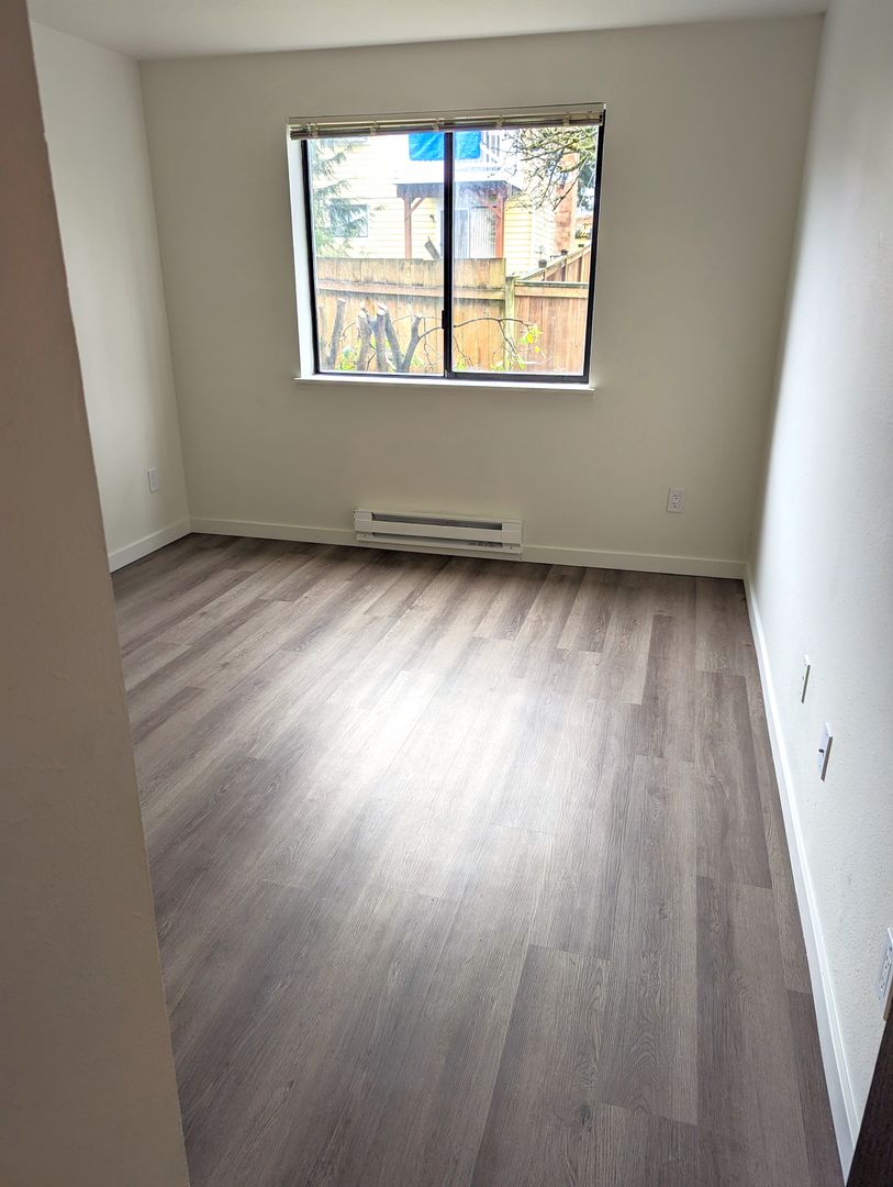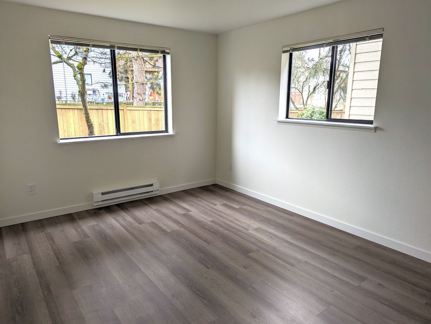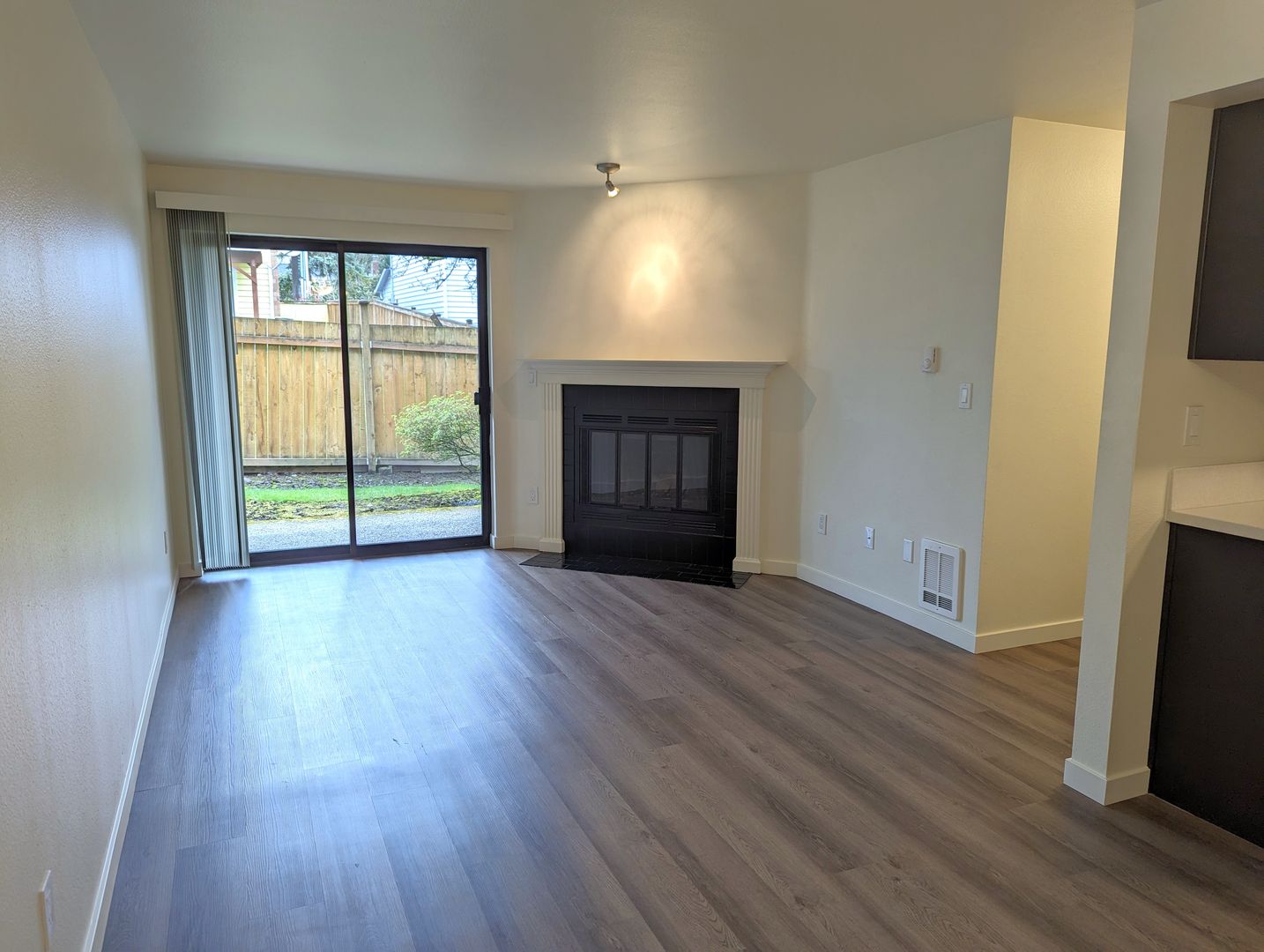 Spacious Ground Floor 2 Bed 1 Bath with Wood Plank Floors! Patio with Storage, Electric Fireplace, In-Unit Full-Size Washer/Dryer, Walking Distance to Northgate Transit Center, Light Rail, Kraken Arena, Best Buy, Library, and Target.