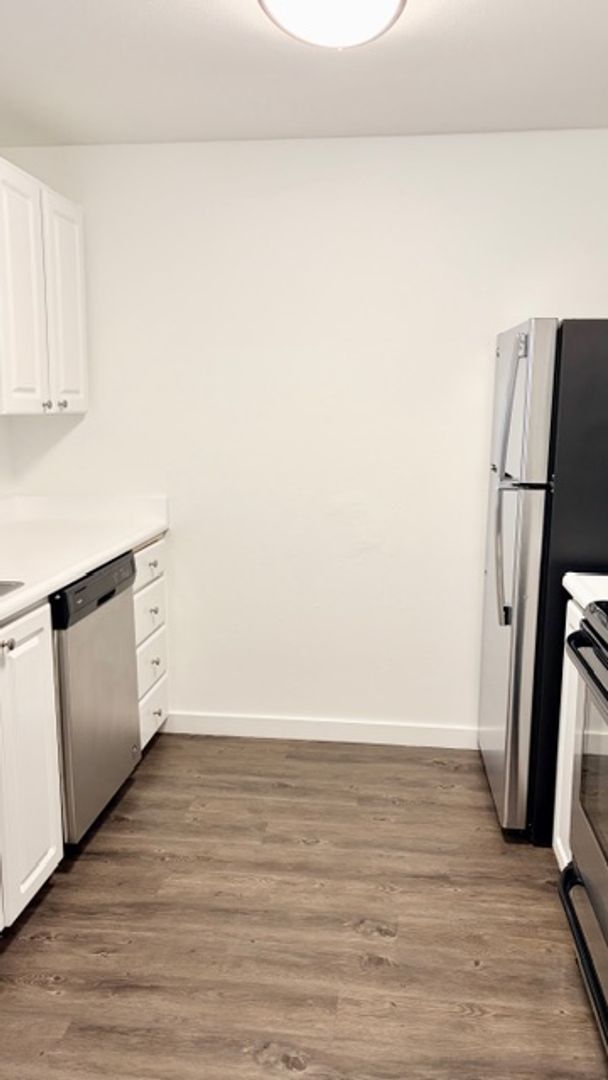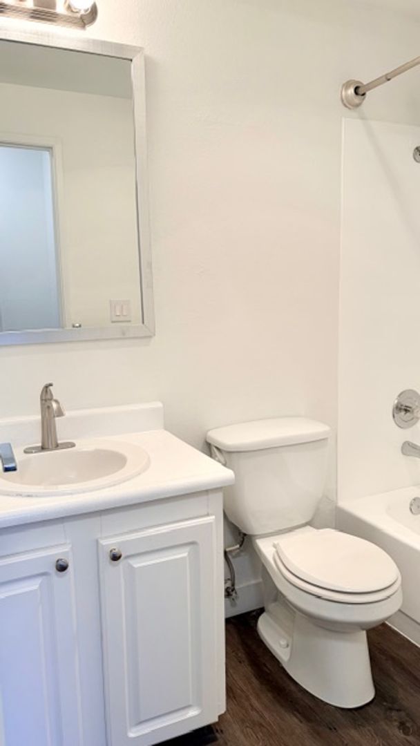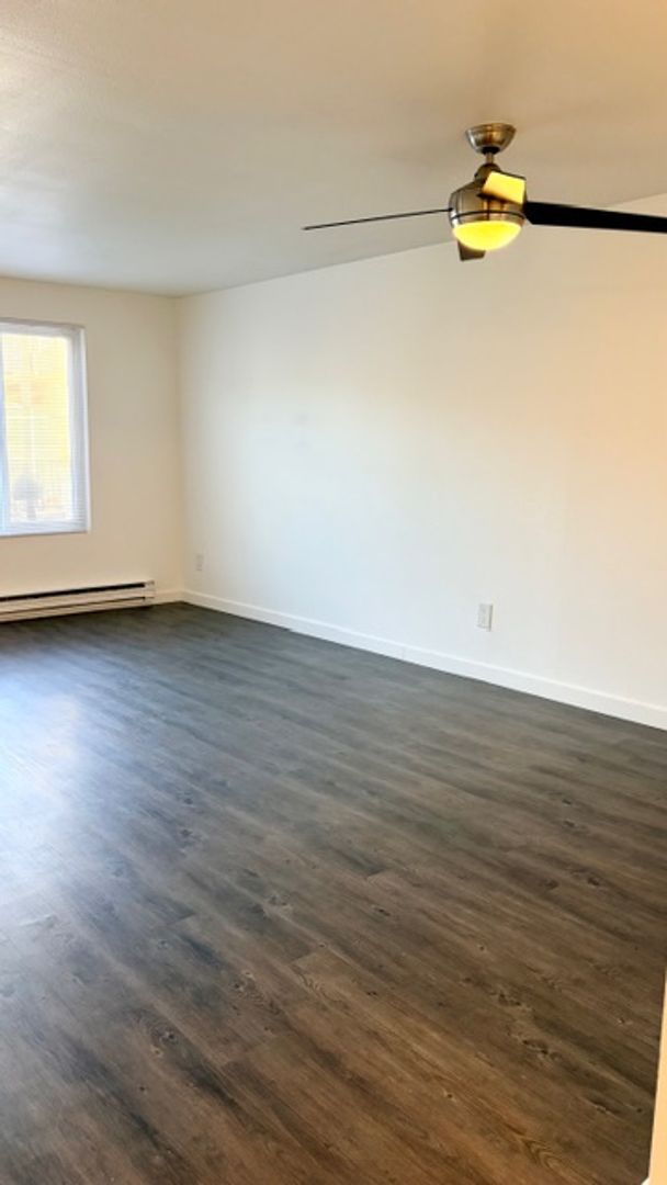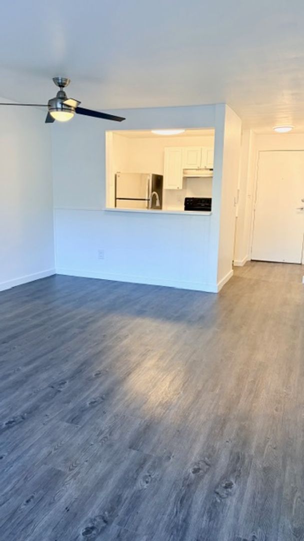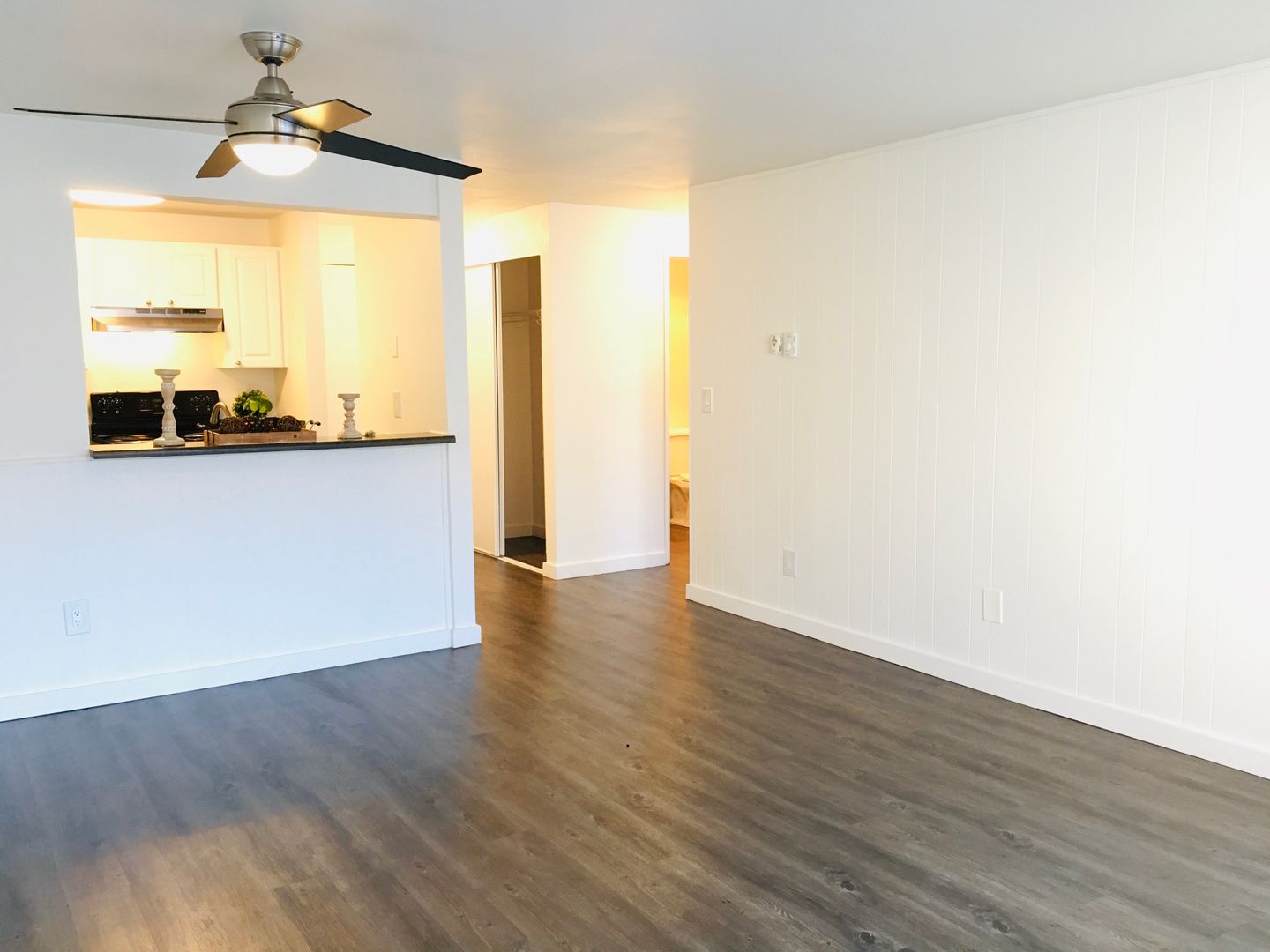 This beautifully updated one bedroom home features designer hardwood style flooring throughout, a fully equipped kitchen, pantry closet, a dining area with overhead ceiling fan, a spacious bedroom with over sized closet, one full bathroom and private balcony.